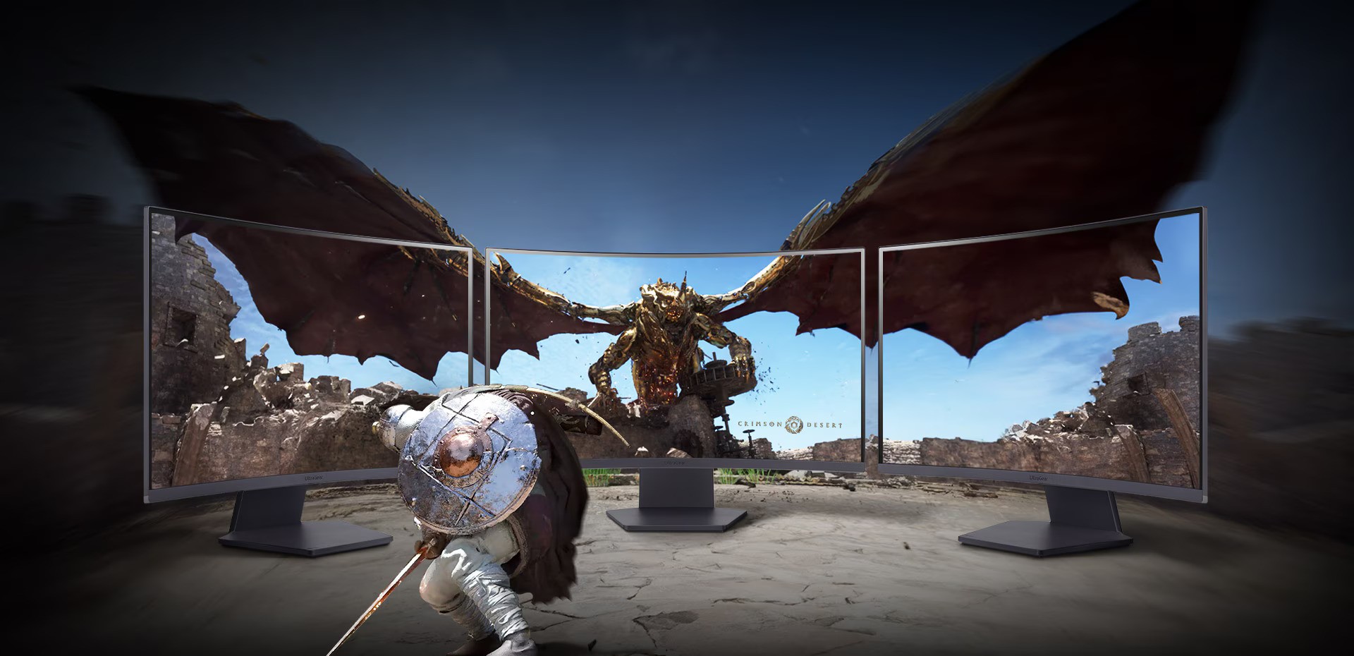 Enhance your gaming experience with a 3-side virtually borderless design for an immersive view and tilt adjustable base to help you play the game more comfortably. Its clutter-free L stand occupies minimal desk space, allowing you to minimize dead space.