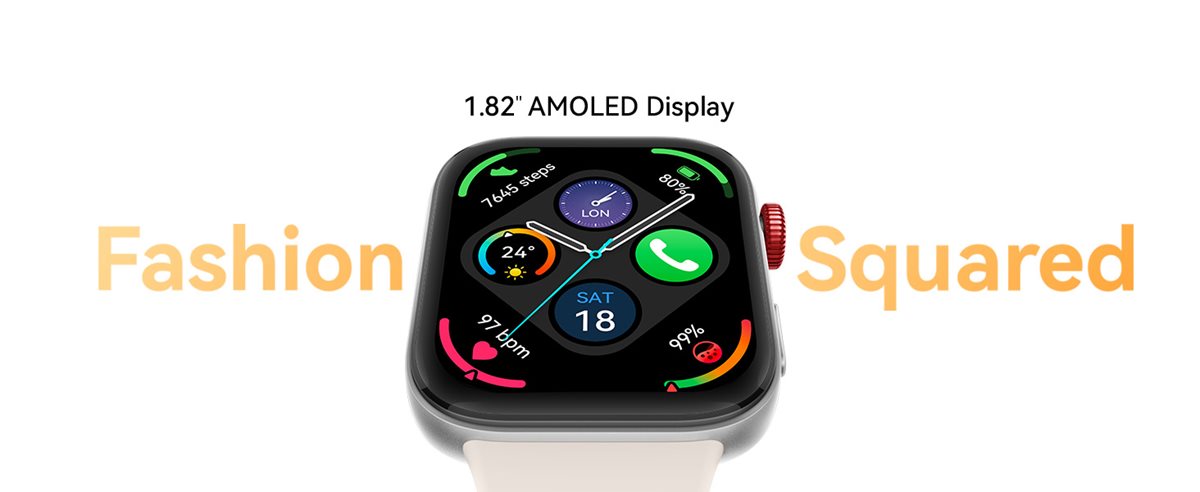 The big, bright AMOLED square display shows you your daily stats at the flick of a wrist. Despite being a total eye-catcher, it's so light and thin, you'll hardly know it's there. True to its name, this watch is all about keeping you active. It's packed with health and fitness goodies, like the Stay Fit app for insights, Activity Rings to encourage good habits, and Intelligent Sports Recommendations made for your routine. Plus, when you need a little pick-me-up or some pre-workout action, those Quick Workout Animations are just the ticket.
