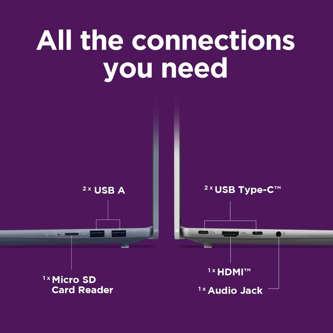 The all-metal chassis on the IdeaPad Slim 5x Gen 9 laptop, at only 16.9mm thin, merges military-grade durability with a sleek reliable build, ideal for life on the move. Offering a full IO interface: USB-C, USB-A, HDMI, and a card reader, designed for convenience and versatility. Perfect for those who value sophistication and functionality in their tech.