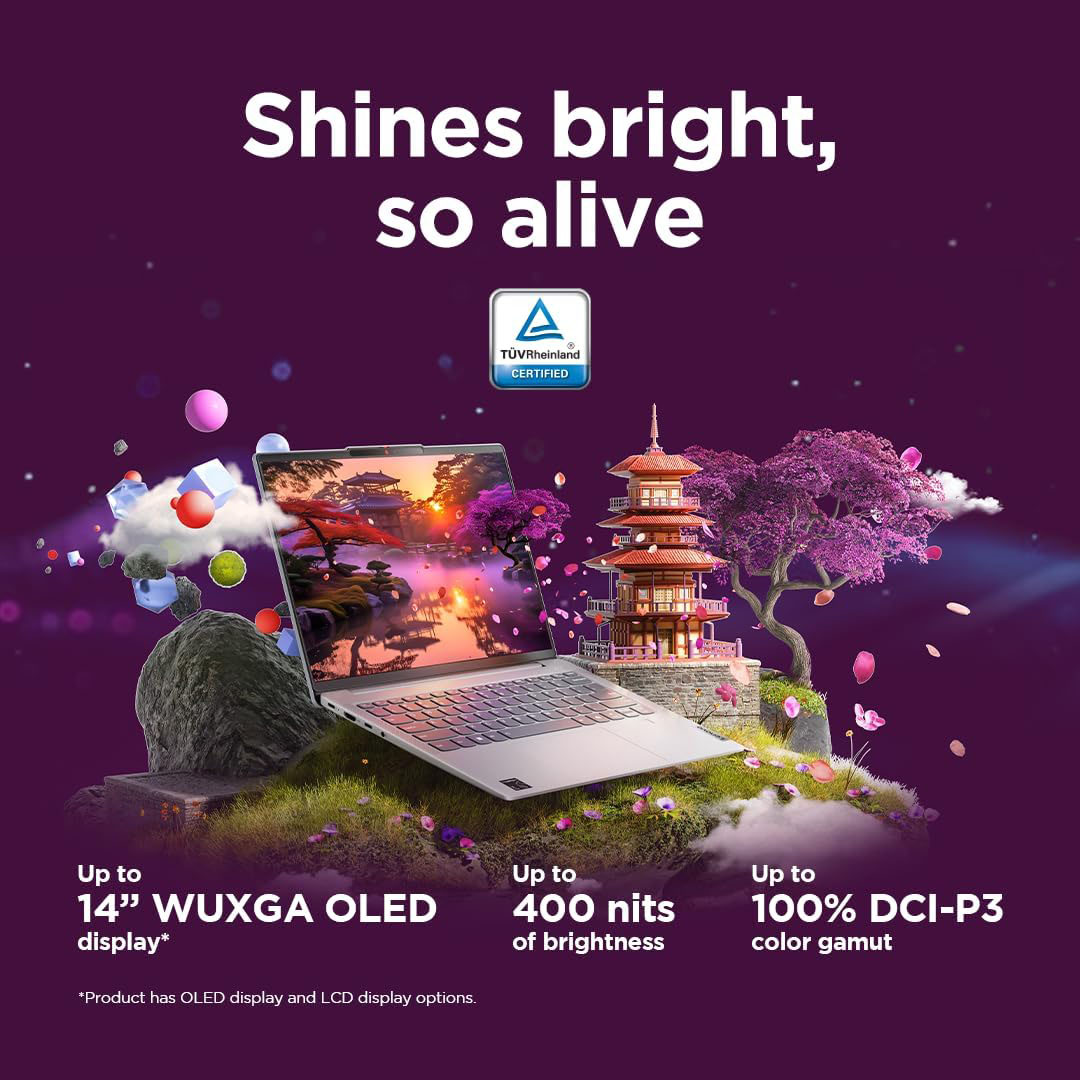 Dive into a visual spectacle like no other on our dazzling 14" 16:10 display—with OLED available on select models—and slim, 4-side narrow bezels for maximum display real estate. Every pixel sings with color, enhancing work and play. Whether watching or creating content, rest easy without straining your eyes thanks to TÜV Eyesafe® low blue light certification.
