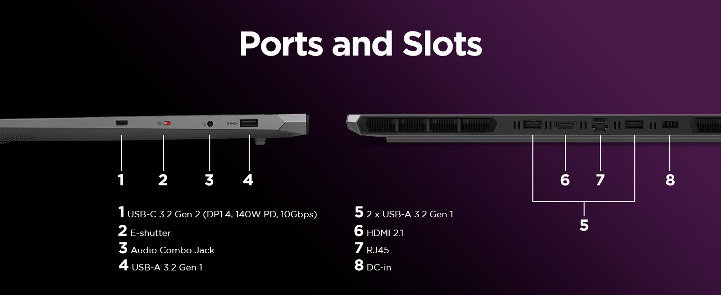 1x USB-C® (USB 10Gbps / USB 3.2 Gen 2), with Lenovo® PD 140W and DisplayPort™ 1.4