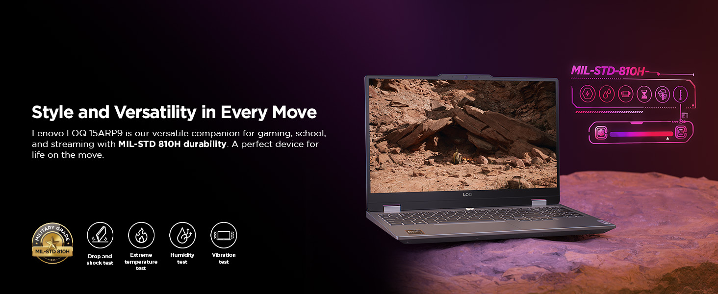Immerse yourself in gaming with a 15.6 inch 16:9 display, coupled with 3-side narrow bezel. Full HD resolution, 144Hz refresh rate, and 300-nit brightness ensure vivid visuals.