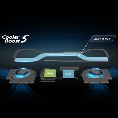 The shared-pipe design enhances thermal efficiency by connecting heat pipes from the CPU and GPU. Paired with MSI Cooler Boost 5, featuring two fans and up to seven heat pipes, this solution ensures optimal cooling for uninterrupted gaming sessions.