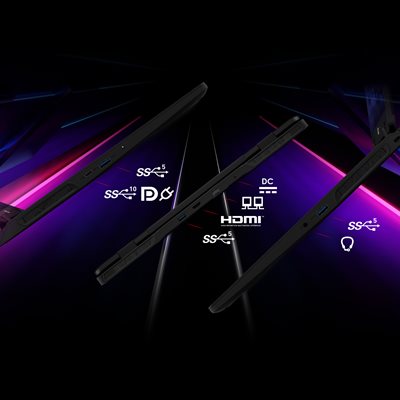 1x Type-C (USB3.2 Gen2 / DisplayPort™/ Power Delivery 3.0) 3x Type-A USB3.2 Gen1 1x HDMI™ 2.1 (8K @ 60Hz / 4K @ 120Hz) 1x Mic / Headphone Jack