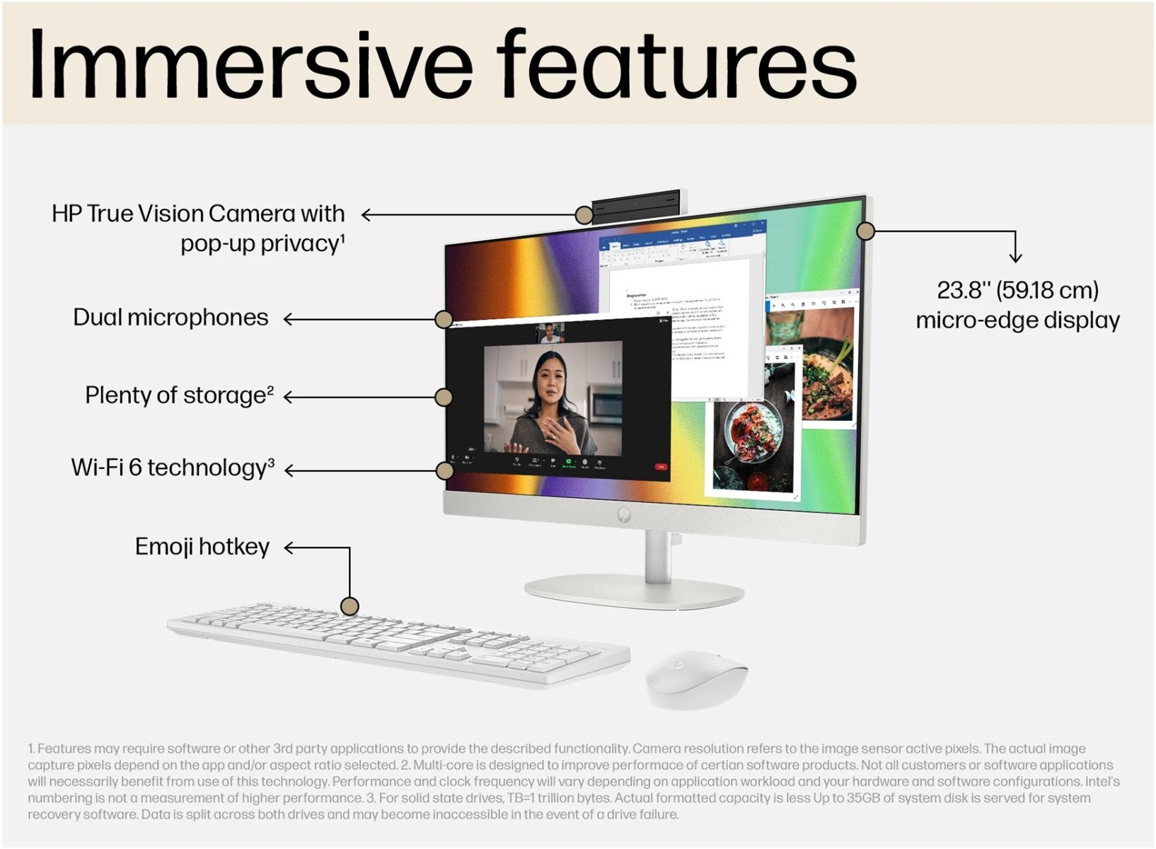 - Only be seen when you want to - the Full HD webcam has a privacy shutter for peace of mind - Windows Hello facial recognition lets you sign in with just a smile, no need to type your password over and over - The 1 TB SSD is plenty of space for your important photos and files - A wireless mouse and keyboard are included in the box, so you can get set up straight away - It's made using sustainable materials, including ocean-bound and post-consumer recycled plastic - Stay productive with Windows 11 and it's improved Start menu and multi-tasking tools