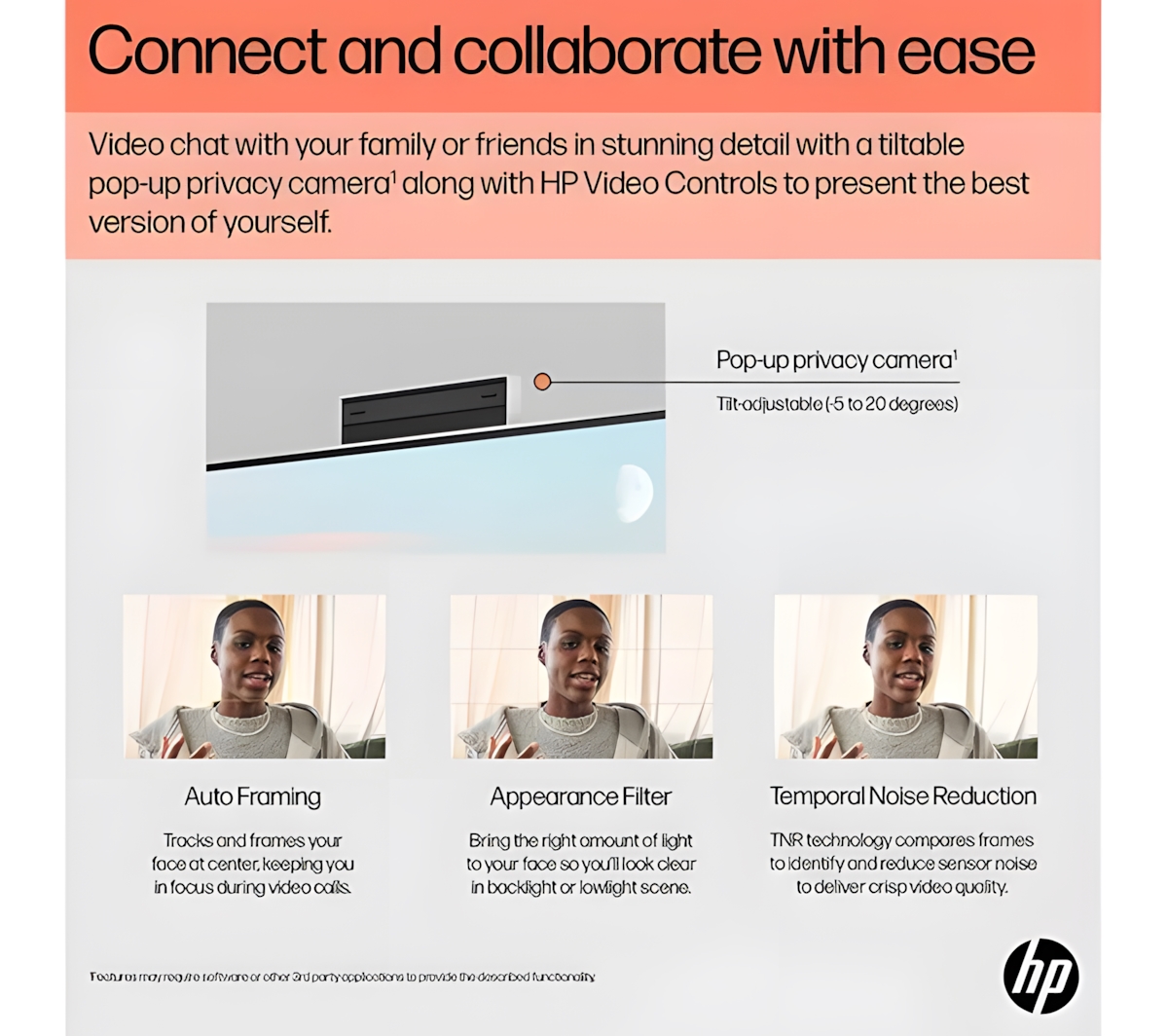 Made for true collaboration with a tiltable, pop-up privacy camera, dual mics, and advanced noise-reduction.