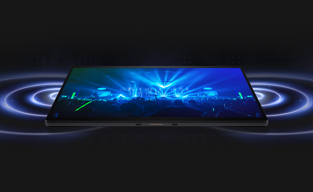 Dual speakers powered by a Smart Amp offer Audio and Dolby Atmos support deliver for superb stereo sound. A high SNR 3-mic array and AI Noise Cancelation ensure clear team communication even in noisy environments.