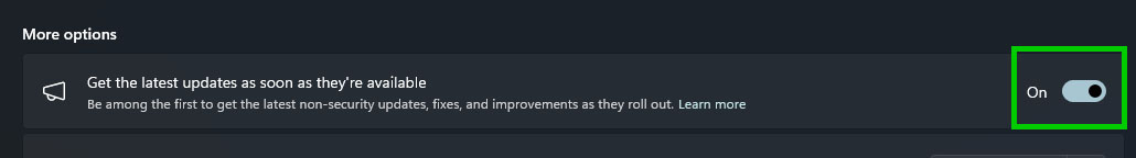 If you don't want to follow this process every time, you can also turn on automatic updates. To do this, follow step 1, but instead of clicking check for windows updates there is a button next to it that will say "Get the latest updates as soon as they're available. Set the toggle on on and your computer will always try and get the latest updates automatically.