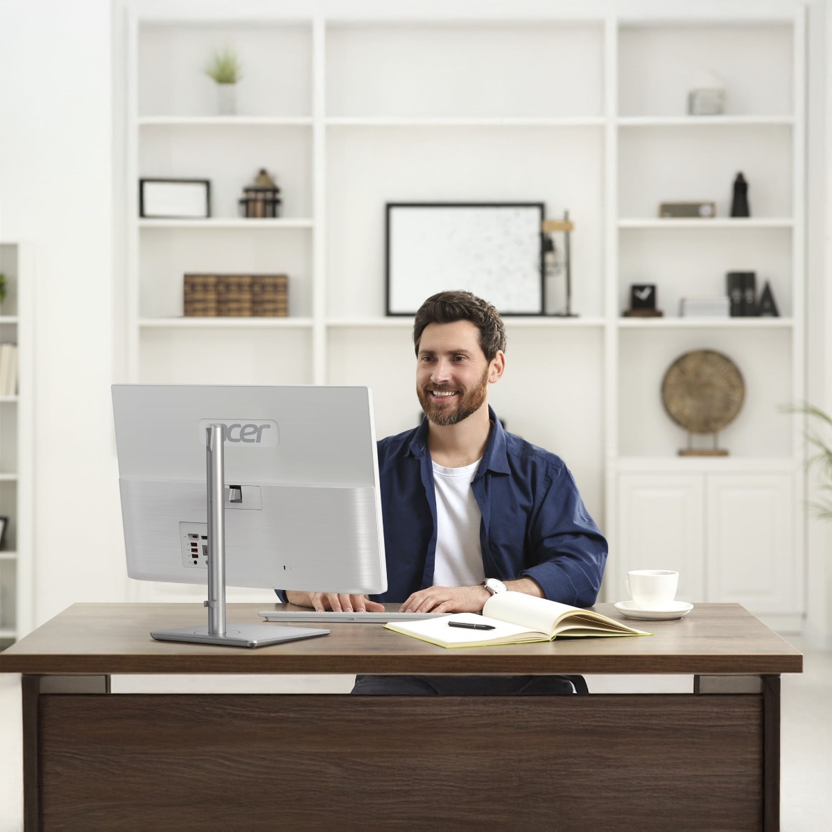 Slim, ergonomic, and minimalist, Aspire C all-in-one delivers exceptional flexibility and manoeuvrability - with a tiltable screen (-5 to 25°) and swivel (up to 30° L/R) on a versatile height adjustable ergo-stand at up to 120mm.