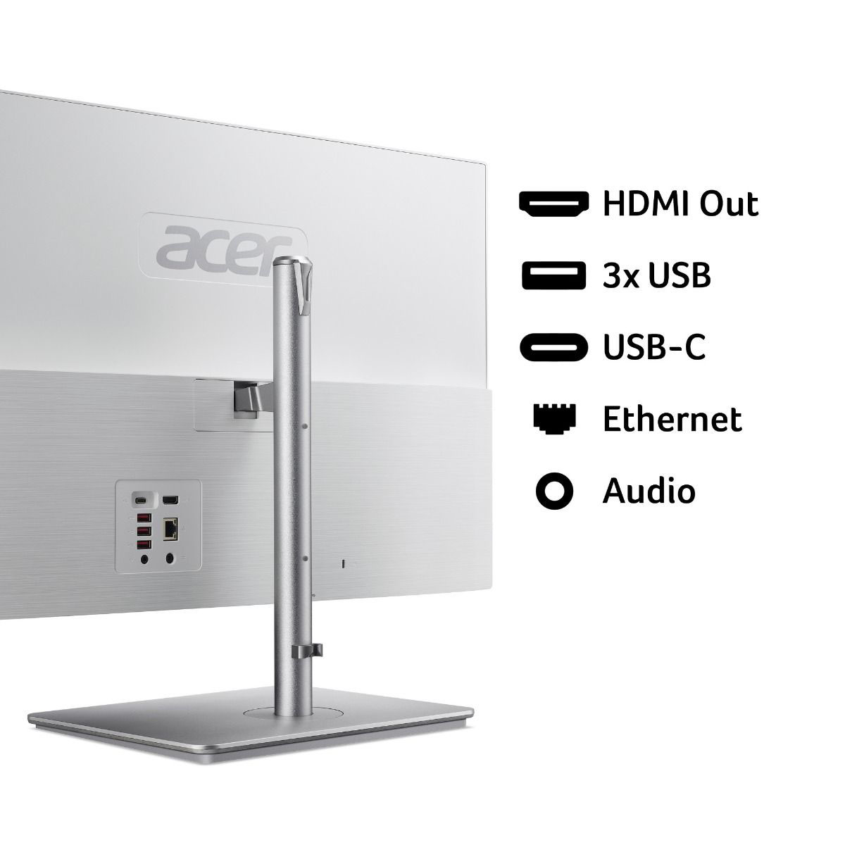 Slim, ergonomic, and minimalist, Aspire C all-in-one delivers exceptional flexibility and manoeuvrability with a tiltable screen (-5 to 25°) and swivel (up to 30° L/R) on a versatile height adjustable ergo stand at up to 120mm.