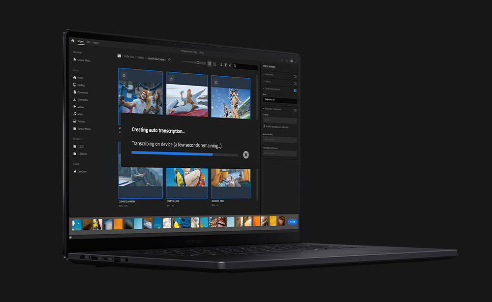 Step into the future of content creation with the AMD Ryzen™ AI 9 HX 370 processor. Boasting 50 TOPS of NPU processing power, it delivers AI-enhanced efficiency. With dominant single-core and multi-core performance, importing and rendering demanding 4K footage is a breeze. The Ryzen AI-powered NPU accelerates AI-driven tasks in Adobe Premiere Pro, streamlining processes like speech-to-text transcribing, auto sequence-framing, and scene-edit detection. Focus on storytelling, not workflow.
