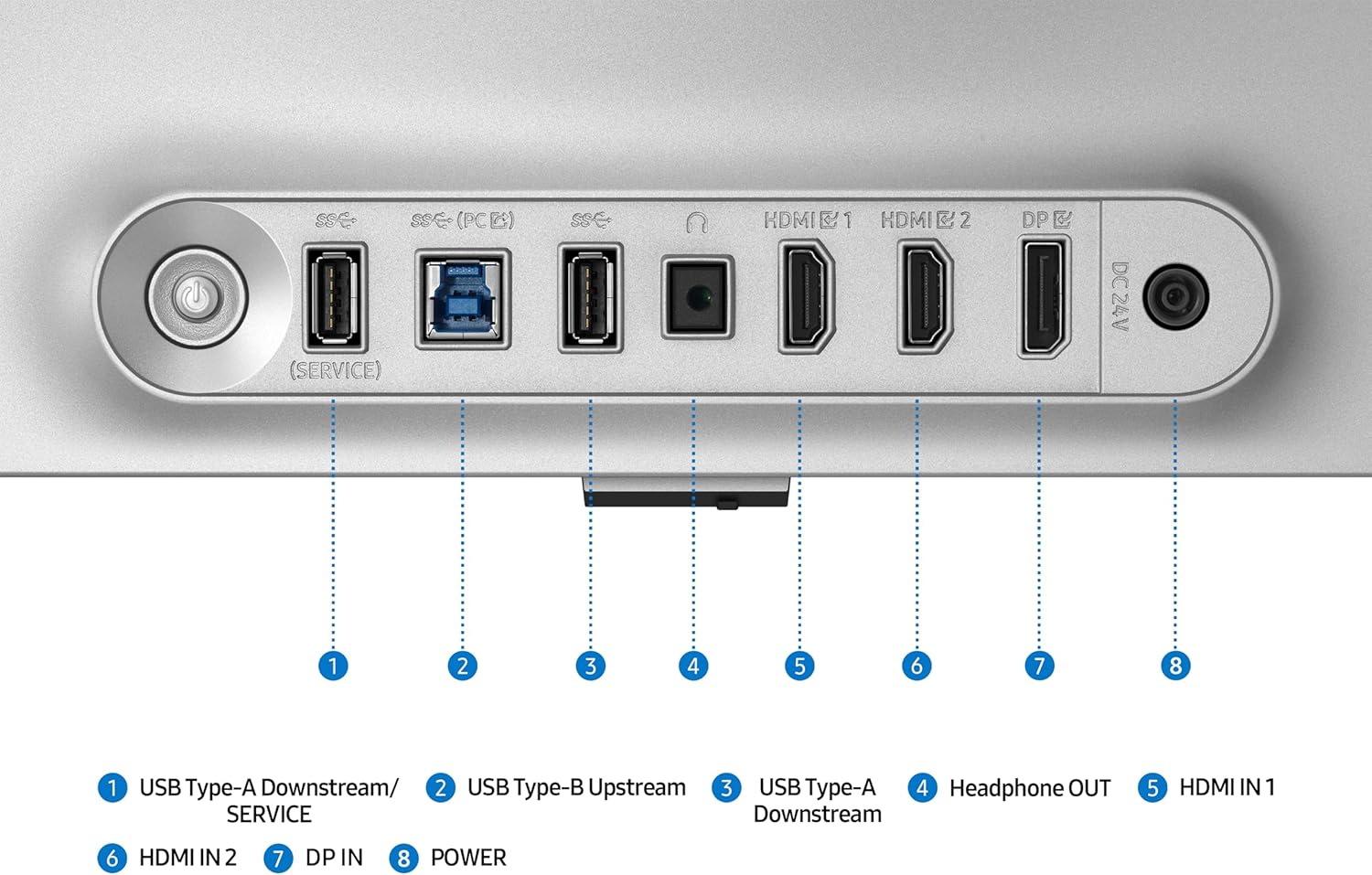 Ports Display Port: 1 EA Display Port Version: 1.4 HDCP Version (DP): 2.2 HDMI: 2 EA HDMI Version: 2.1 HDCP Version (HDMI): 2.2 Headphone: Yes USB-C: No USB-B Upstream Port: 1 USB Type-A Downstream Port: 2 USB Type-A Downstream Version: 3.2 Gen1