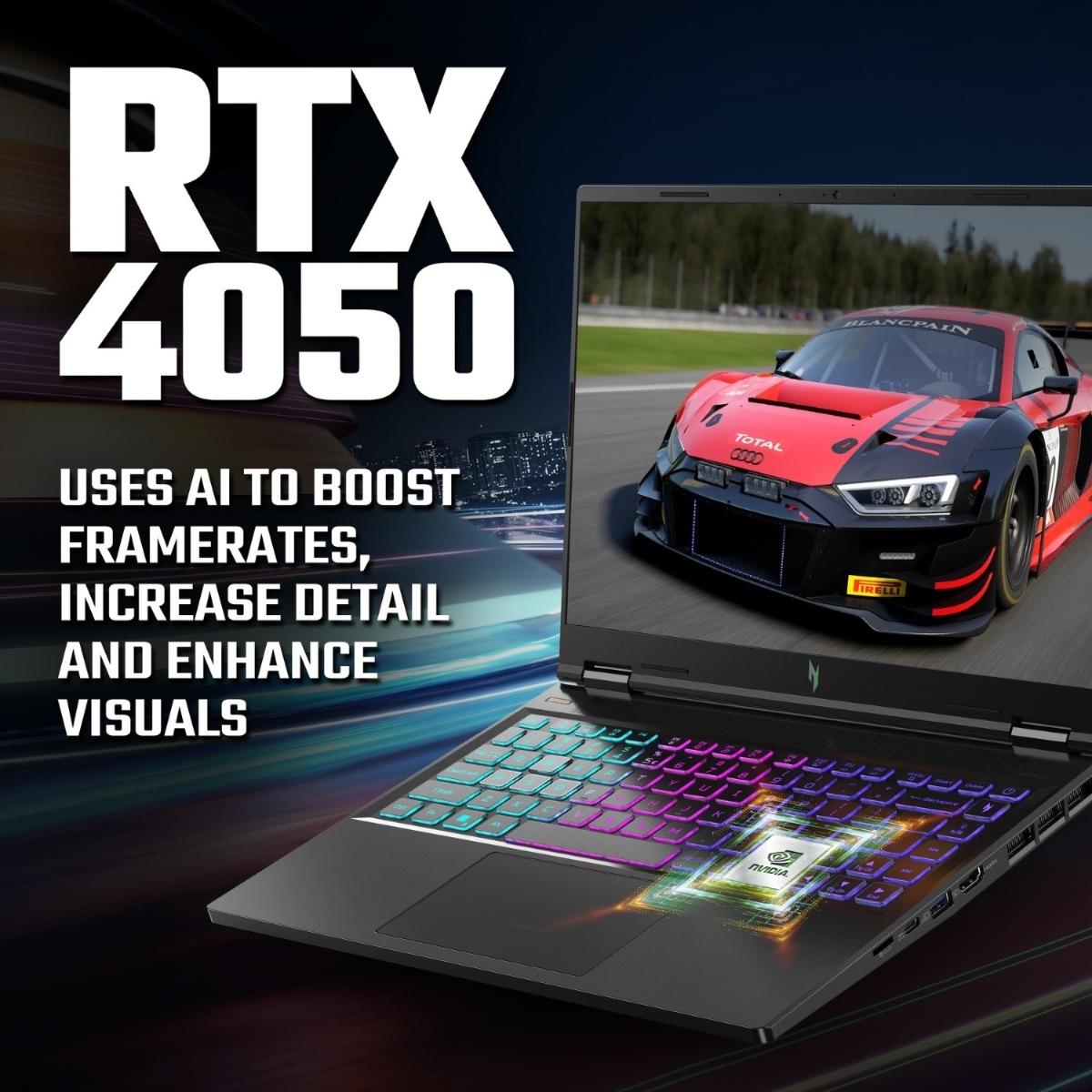 GeForce RTX™ 40 Series Laptop GPUs power the world’s fastest laptops for gamers and creators. Built with the ultra-efficient Ada Lovelace architecture, RTX 40 Series laptops feature specialized AI Tensor Cores, enabling new AI experiences that aren’t possible with an average laptop. Enjoy a quantum leap in performance with DLSS 3.5 and lifelike virtual worlds with full ray tracing. Plus, AI-powered Max-Q technologies optimize system performance, power, battery life, and acoustics for peak efficiency.