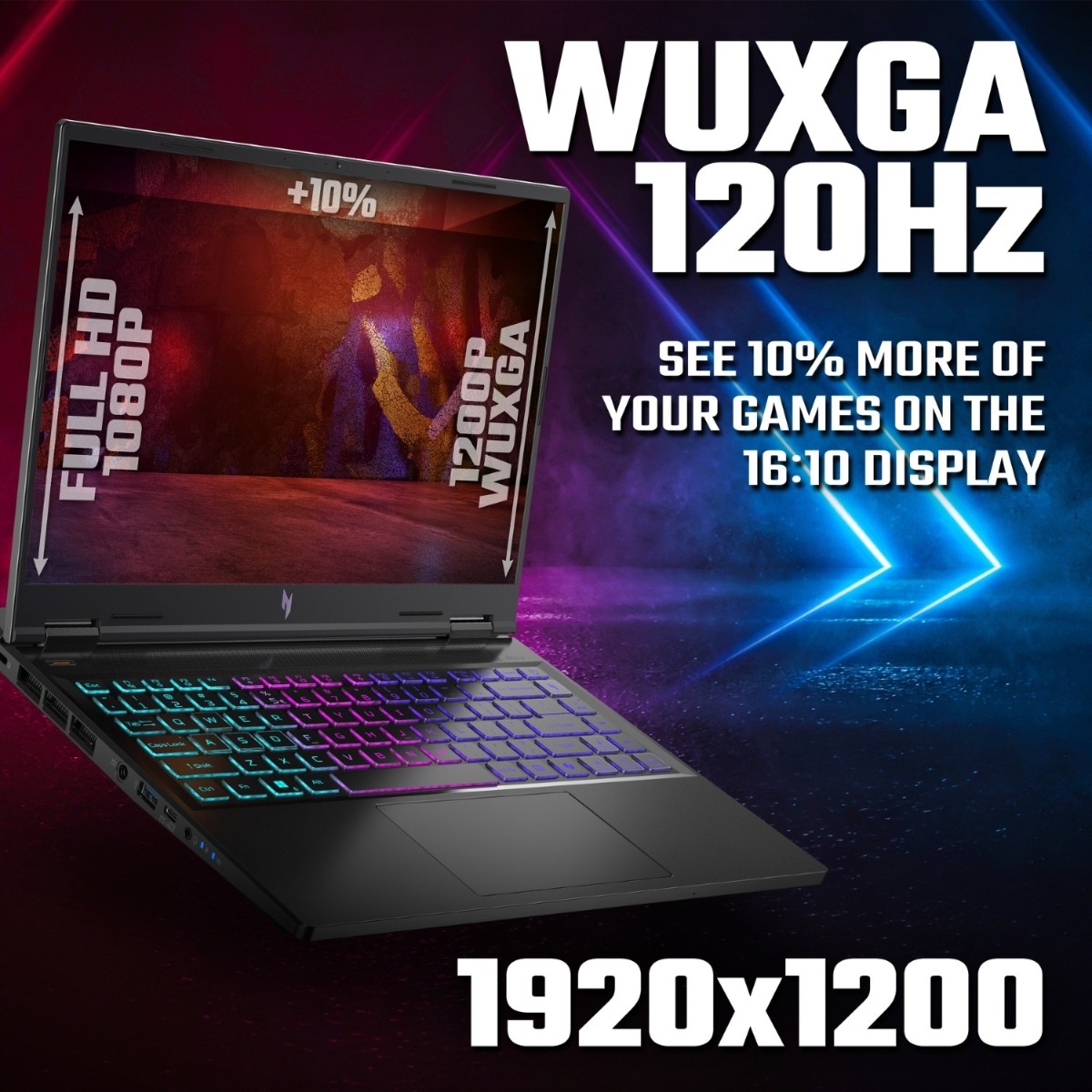 The 14.5-inch display, with its 16:10 aspect ratio, offers more vertical space for an extended view of your battleground. The WQXGA resolution enriches your visual experience, packing every inch with pixel-perfect imagery. Coupled with a 120Hz refresh rate for buttery-smooth transitions and sRGB 100% color accuracy for true-to-life hues.