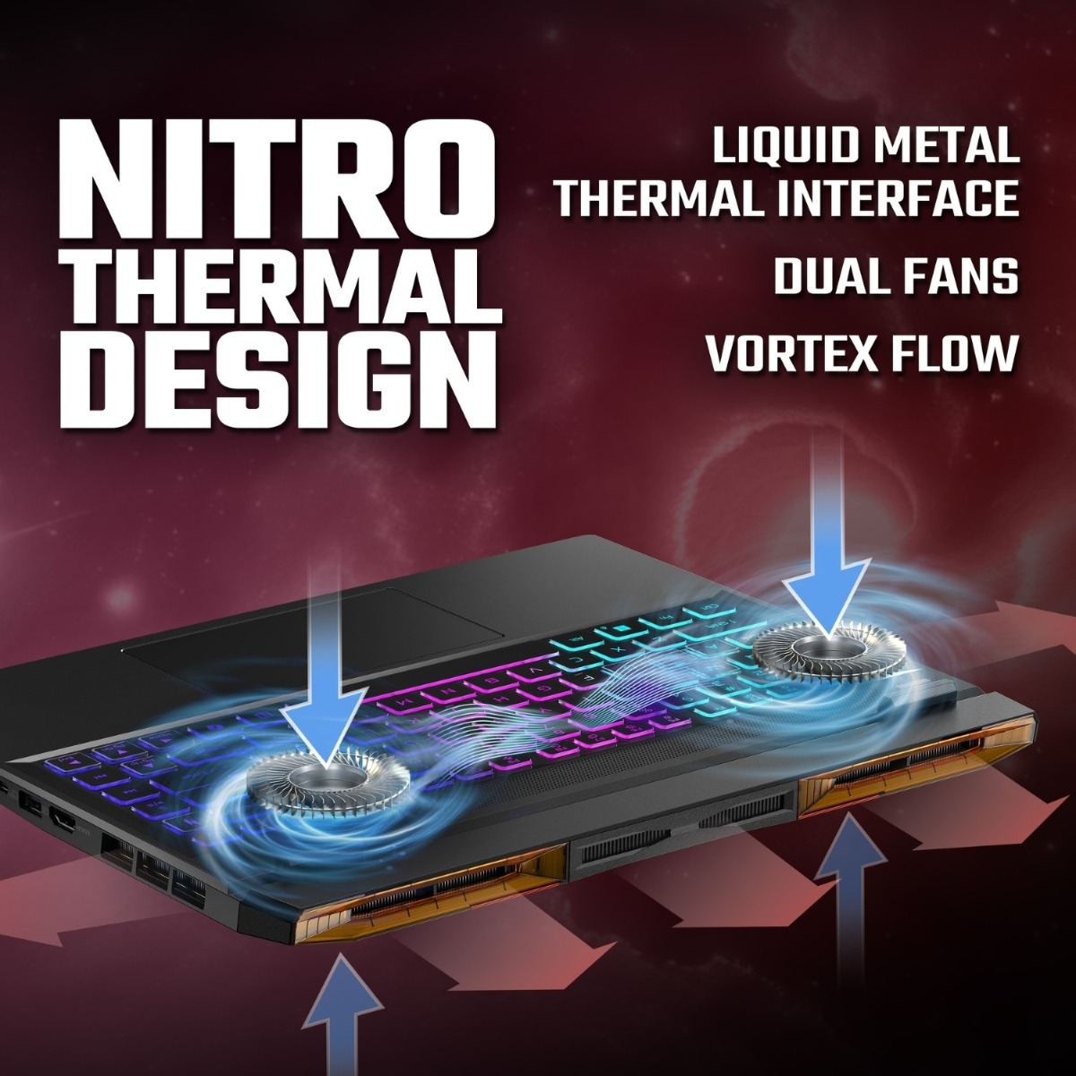 - When the match gets heated, dual cooling fans supported by liquid metal thermal grease will keep your laptop running cool