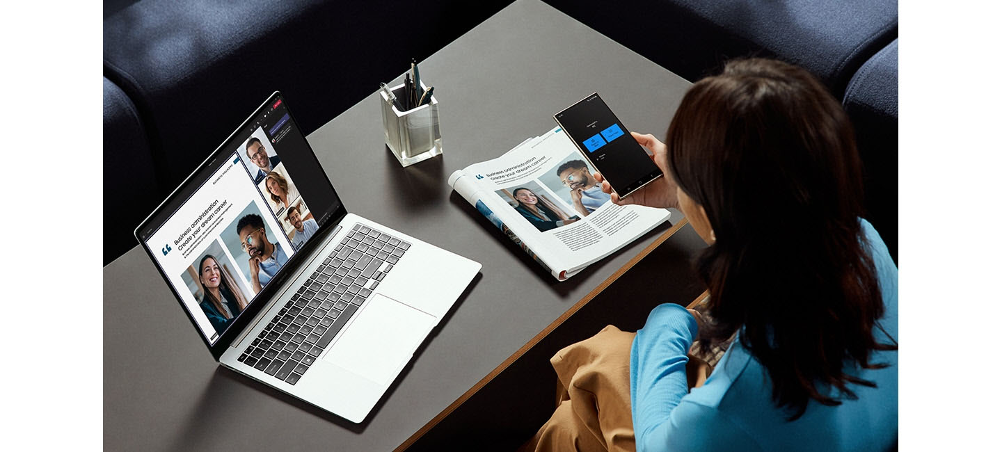 Upgrade your video calls from standard laptop webcam to stunning clarity using your Samsung Galaxy smartphone as a connected camera. Connect seamlessly to your Galaxy Book4 Pro, switch between front and rear cameras to find your angle, and enjoy a high-quality picture with enhanced video effects in video applications.
