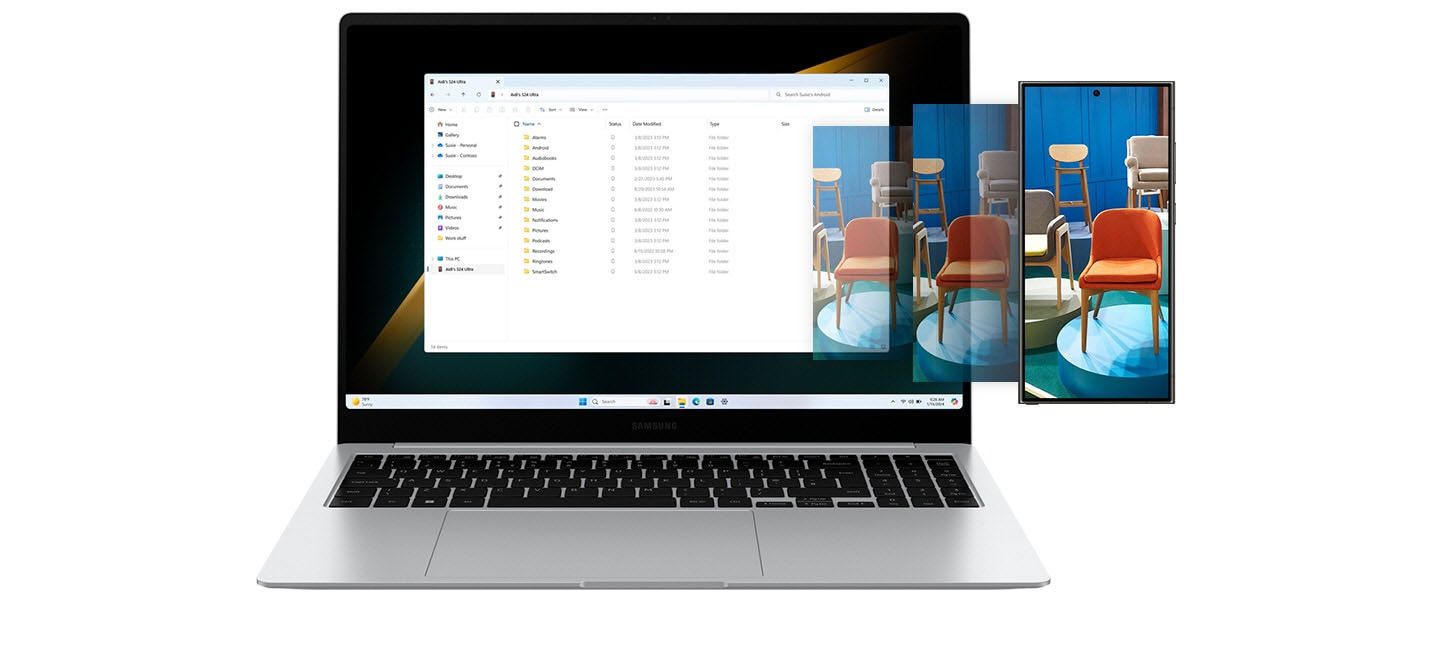 Get direct access to content on your phone right from your laptop with File Explorer. Simply set up the wireless connection between your devices and you're set — search for the files and photos you need, then open them seamlessly from your PC.