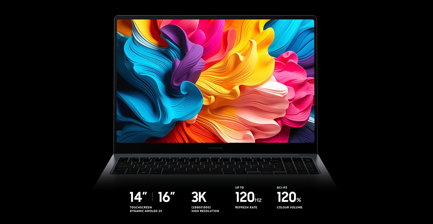 Touch and feel the responsive screen of Galaxy Book4 Pro. Now, the Dynamic AMOLED 2X touch-enabled display allows you to easily navigate through apps and content with the tip of your finger.