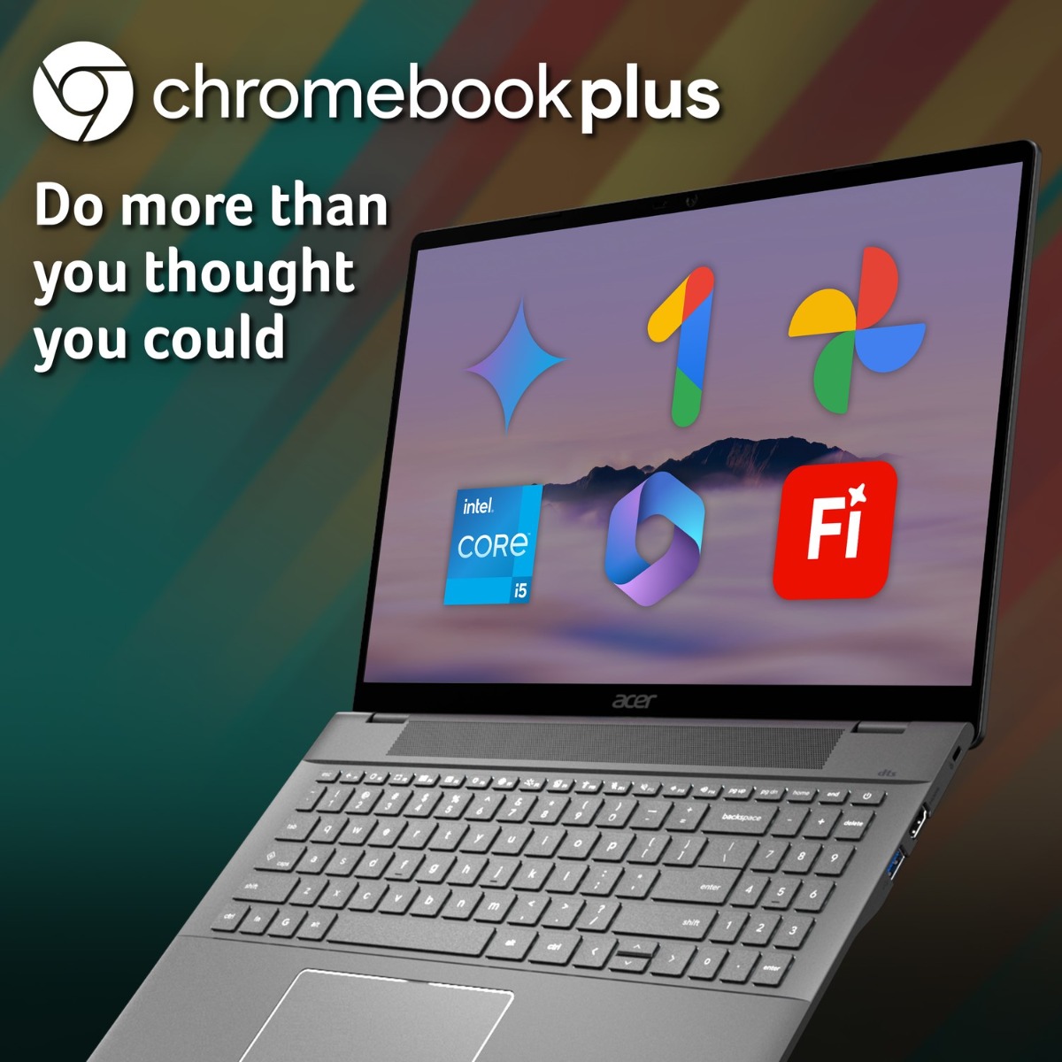 With double the speed, memory, storage and the power of Google AI, you can do more than ever before on Chromebook Plus. With the magic of Gemini, enhance how you read, write, and express yourself.