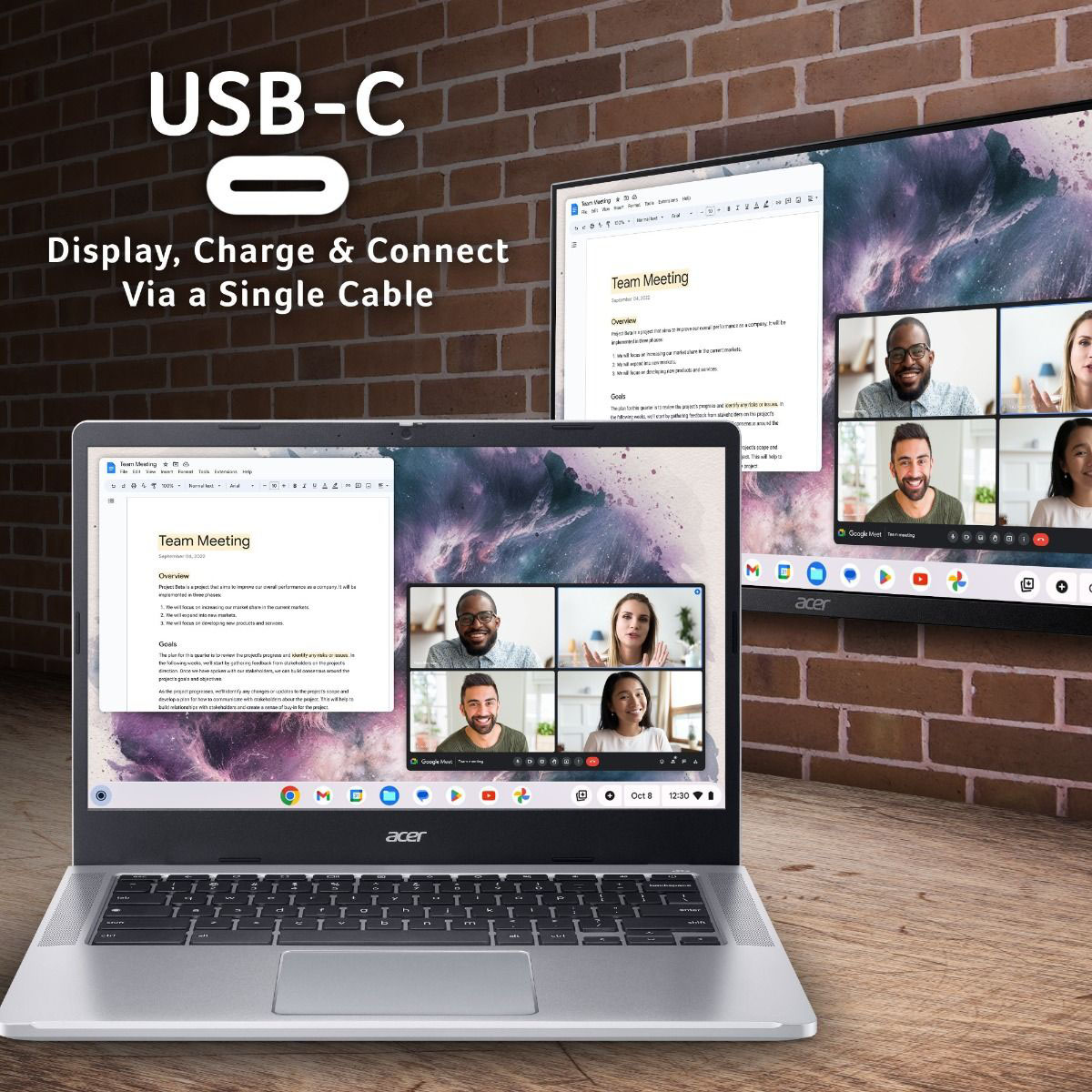 This large-screen Chromebook features a 14” narrow bezel display, up to FHD resolution, and an anti-glare coating so that users can stay productive even in bright conditions. The optional touchscreen display also makes navigation easier and more convenient than ever.