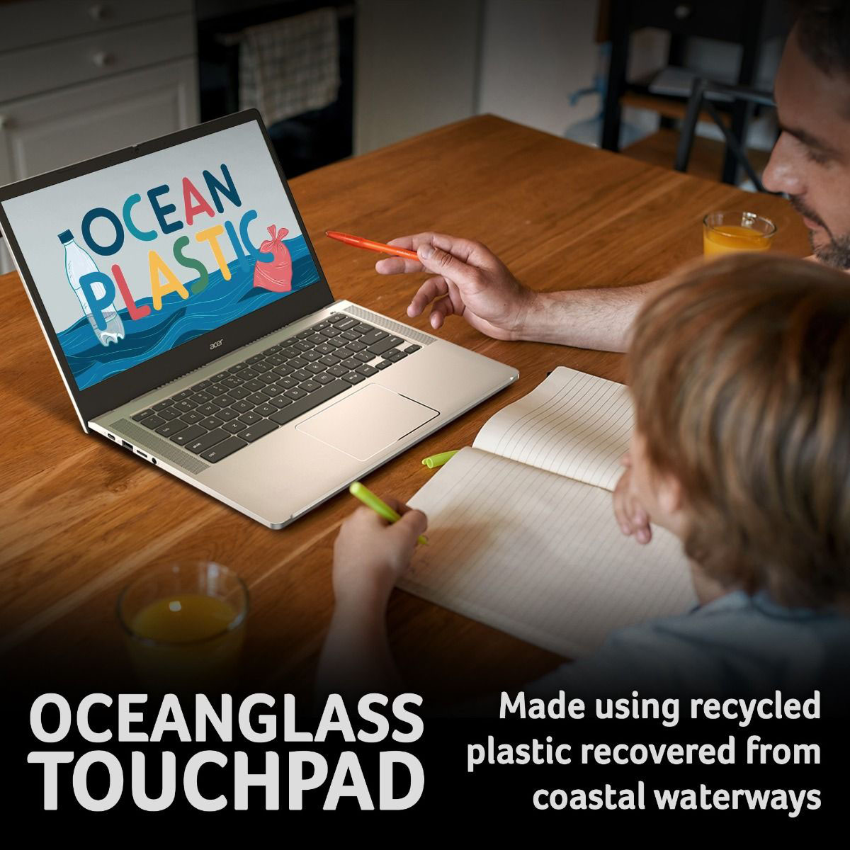 Featuring recycled materials, sustainable packaging, an energy-efficient design, and EPEAT registration, this Chromebook embodies the spirit of our Earthion initiative to reduce waste across the lifetime of the device.