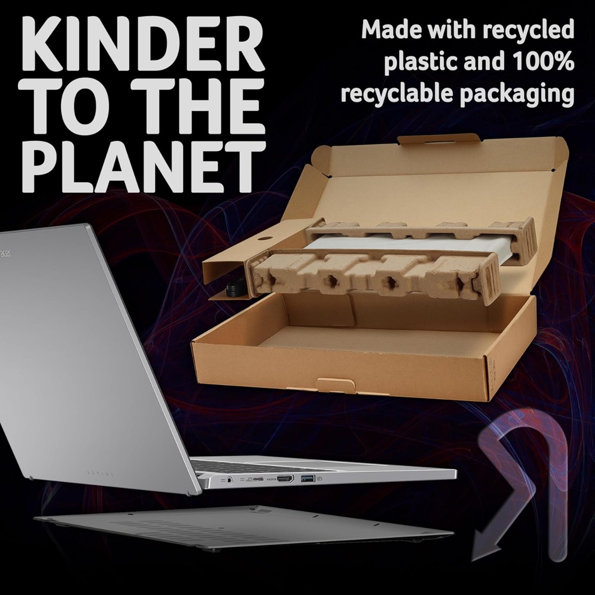 Packaged in 100% recyclable materials and featuring a back cover made from 30% recycled plastic, Aspire Go holds both Energy Star certification and EPEAT Silver registration, empowering you to make a more responsible choice.