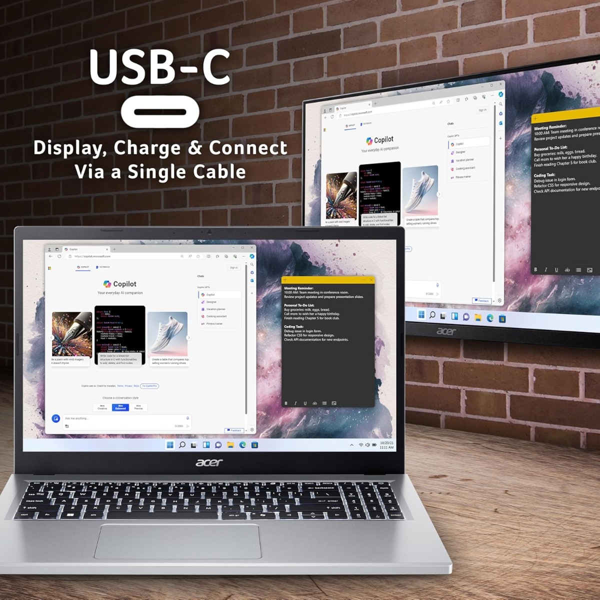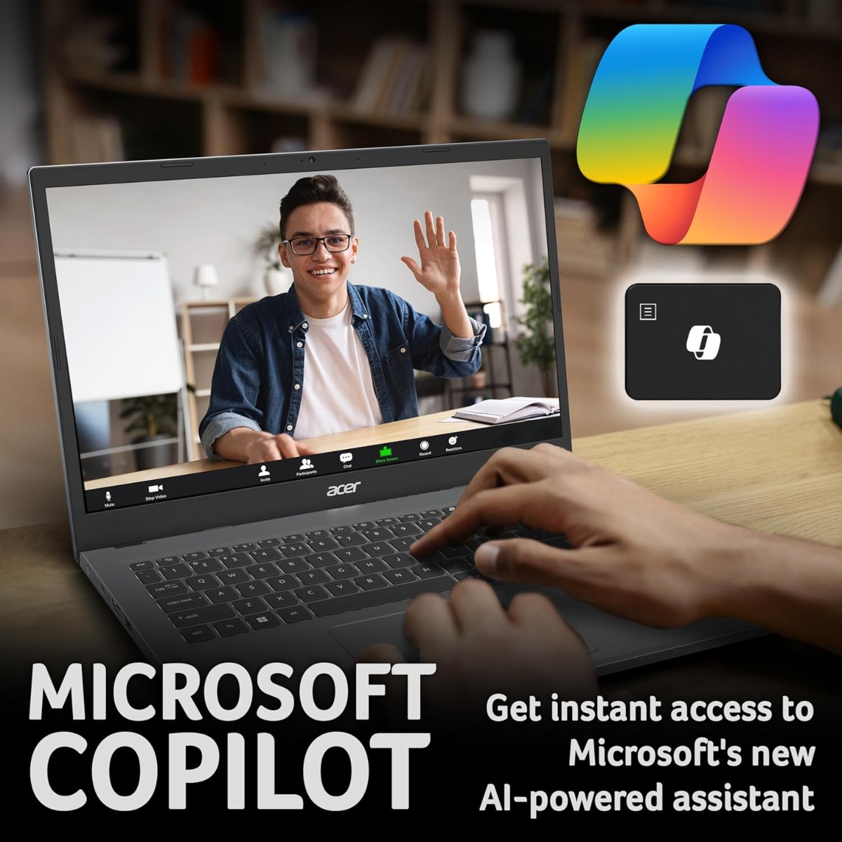 Windows 11 Home powers a user-friendly experience, AI-enhanced by Copilot in Windows—easily accessible via the Copilot key—while Acer TNR solution and Acer PurifiedVoice enhance your video calling experience.