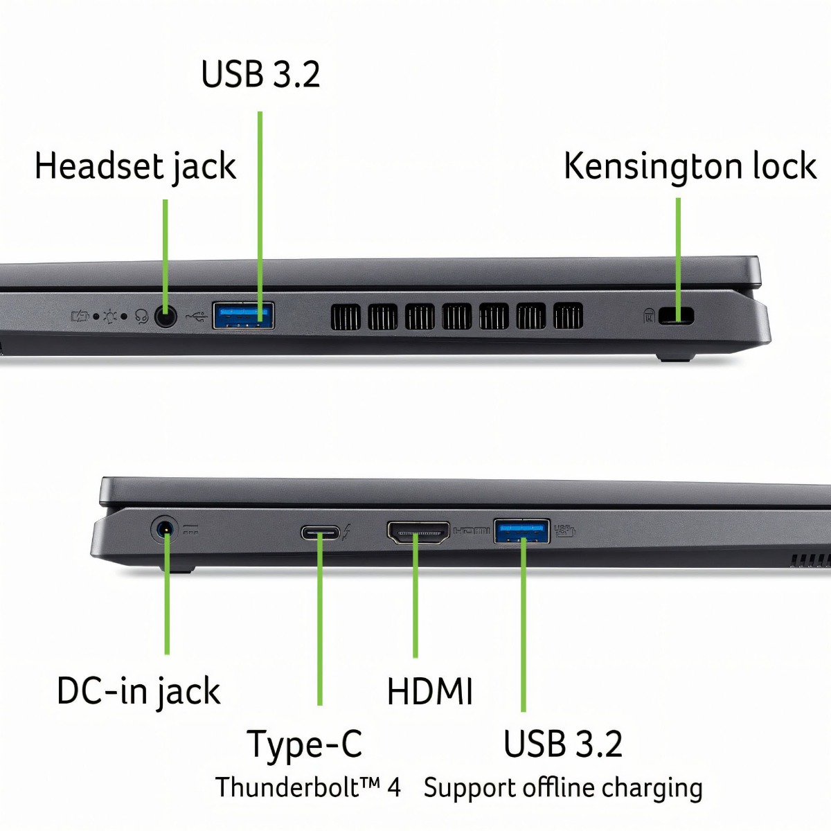 USB 3.2 Gen 1 x 2 HDMI 2.1 x 1 Thunderbolt 4 x 1 3.5 mm jack x 1