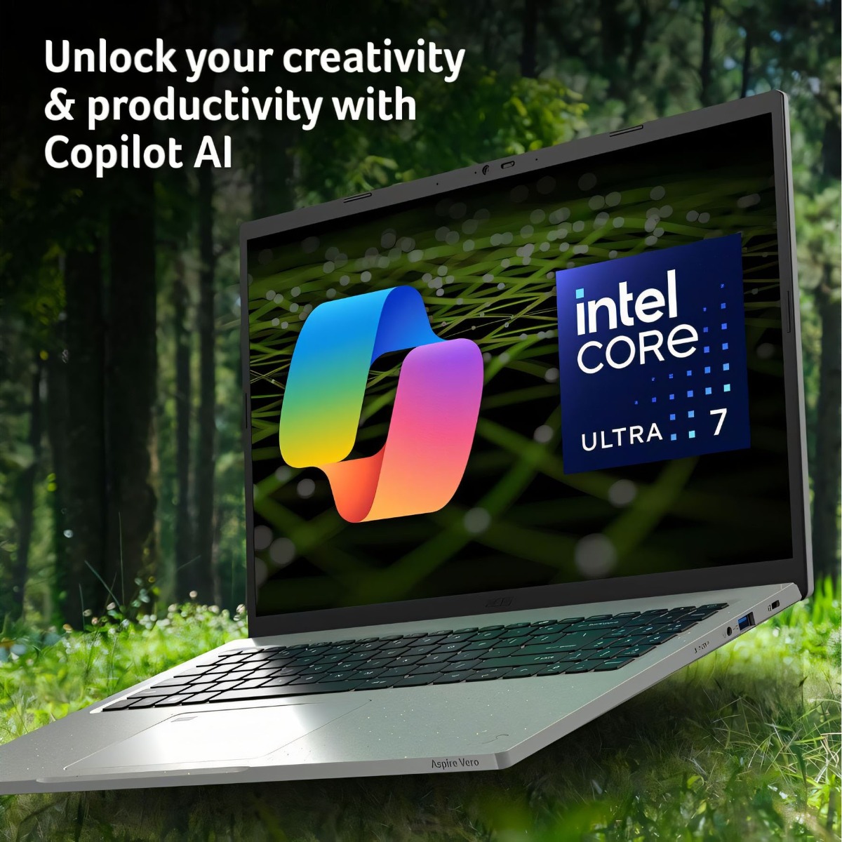 Choosing an eco-conscious device like Aspire Vero 16 doesn’t mean sacrificing performance. With the power-efficient Intel® Core™ Ultra 7 processor2 featuring Intel® AI Boost, you can dive into your tasks with absolute confidence.
