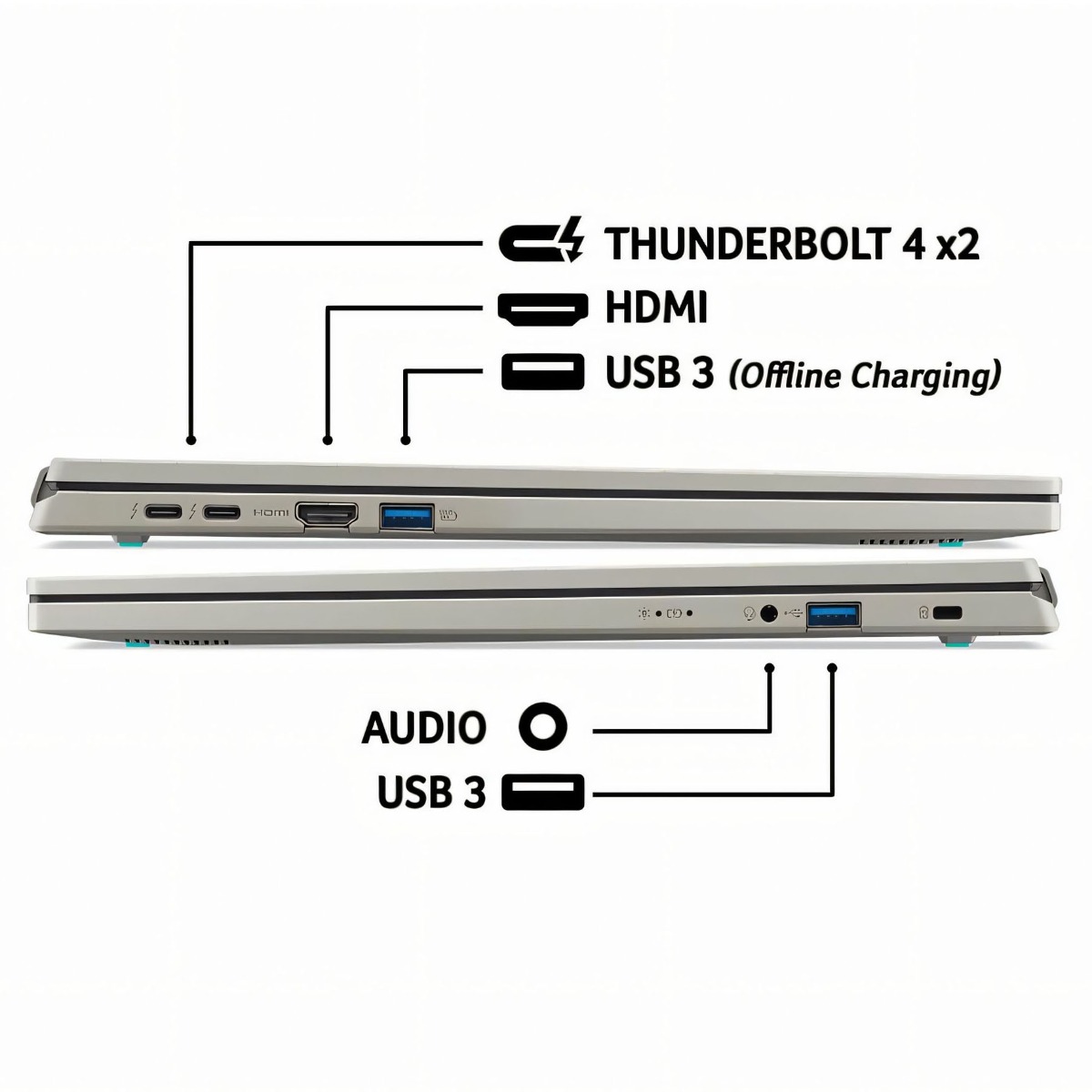 Experience Intel® Evo™ Edition and the freedom of up to 10.5 hours of battery life on a single charge—power up in a flash with the convenience of USB-C fast charging. Aspire Vero 16 also comes with MIL-STD-810H military-grade durability and USB-C fast charging so you can power up in a flash.