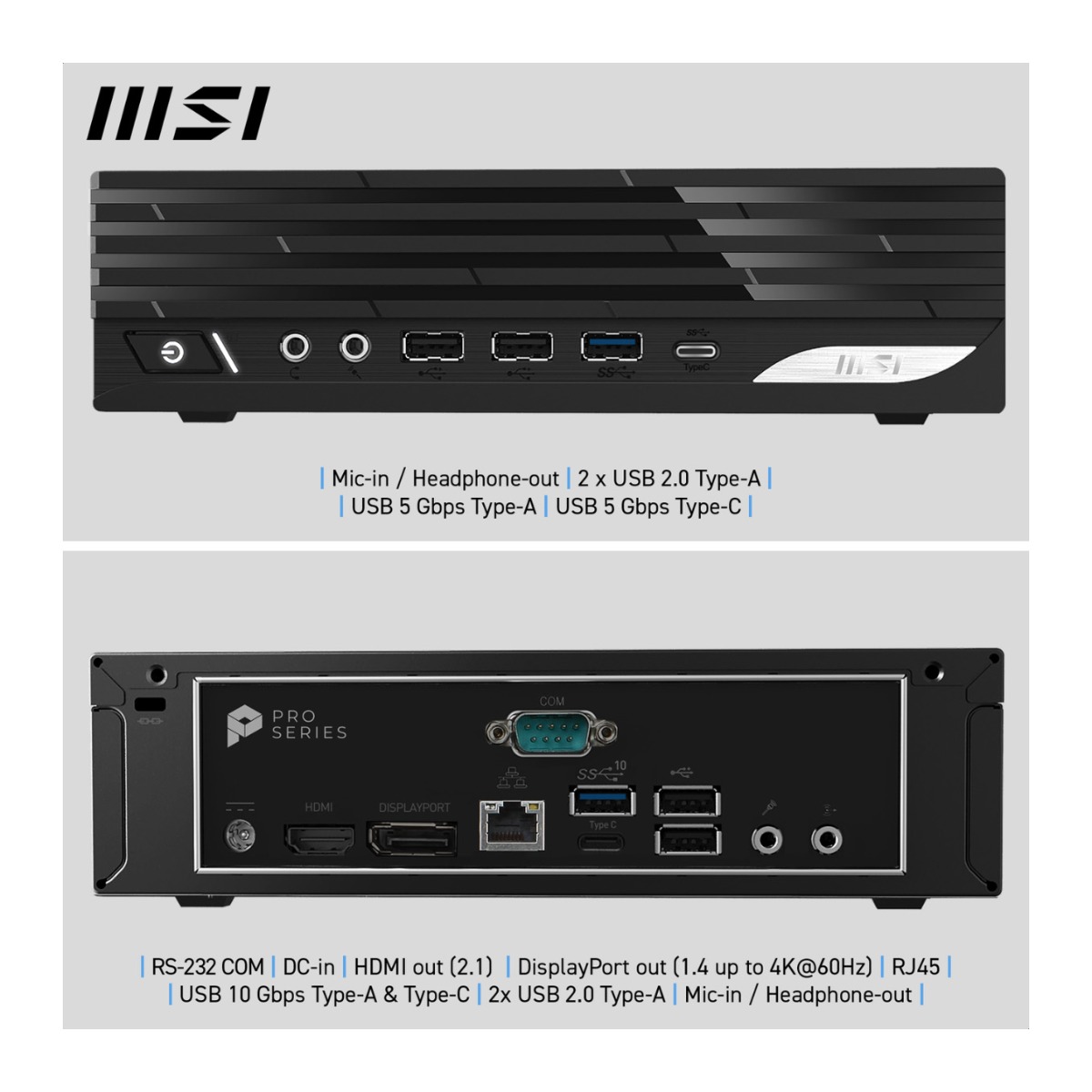 The PRO DP21 14M boasts a sleek and space-saving Small Form Factor (SFF) chassis. Whether it’s placed vertically or horizontally, its compact size makes it a versatile fit for offices, retail counters, or home setups without compromising on performance or expandability.