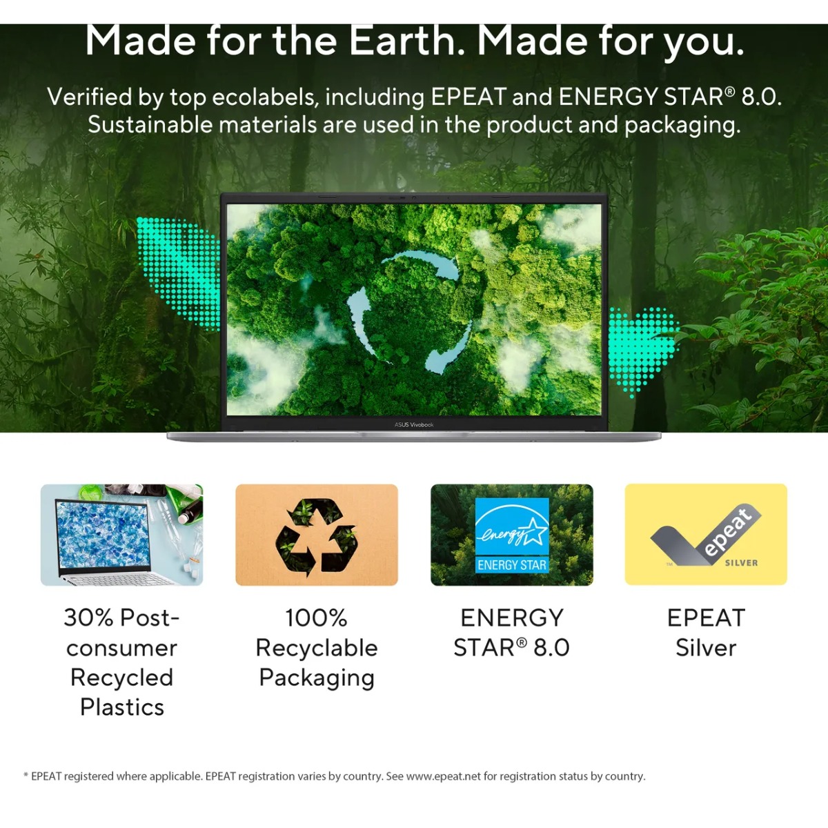 ASUS laptops* are engineered with extraordinary toughness meet the exacting US MIL-STD-810H military-grade standard, undergoing 12 rigorous test methods and 26 punishing test procedures — exceeding industry standards. The upshot is a range of products that are renowned for reliability and durability. These factors also inherently benefit longevity and thus sustainability, so you can work, travel or relax with the confidence that your ASUS laptop is ready for the real world — today, and long into the future.